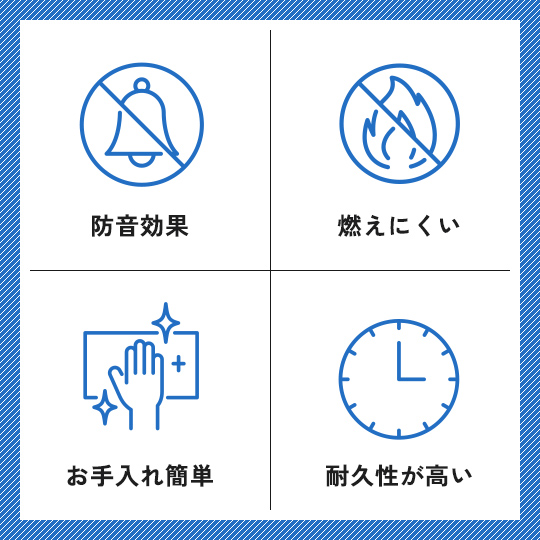 防音・防炎といった機能が備わっているものもあり、汚れた部分だけ取り外して交換できるためお手入れも簡単。